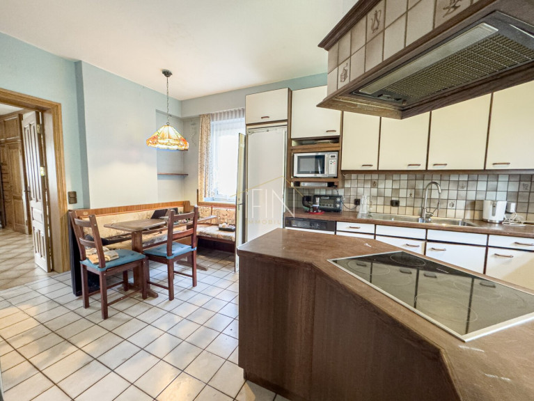 Fliesen, Steinboden, Parkett, Gas, Solarenergie, Zentralheizung, Einbauküche, Bad mit Fenster, Badewanne, Dusche, Garage, Sauna