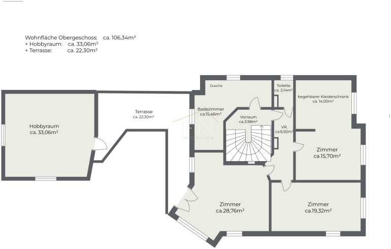 - 3 Zimmer (eines mit begehbaren Kleiderschrank)