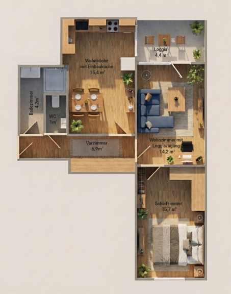Ein besonderes Highlight ist die gemütliche, wettergeschützte Loggia mit Blick in den ruhigen Innenhof – ideal zum Abschalten nach einem langen Tag.