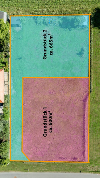 Das Grundstück ist noch nicht geteilt und es kann auch das gesamte Grundstück mit 1.265 m² gekauft werden.