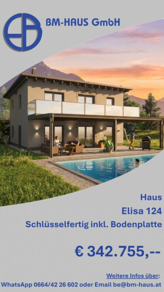 Wir errichten Ihnen inkl. Grundstück mit 600 m² um € 455.190,-- z. B. das Haus "Bella 114" in schlüsselfertiger Ausführung inkl. Fundamentplatte