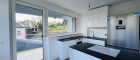 - hochwertige Innenausstattung (deckenhohe Innentüren, elegante große Steinfliesen, große Fensterflächen)