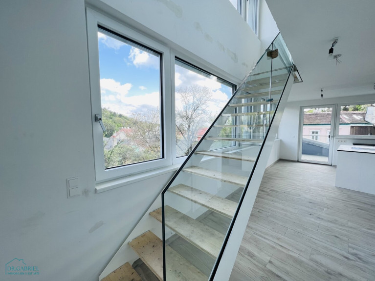 Zur Vermietung gelangt eine lichtdurchflutete Wohnung auf 2 Ebenen in einem neu errichteten modernen Wohngebäude in Sievering. Das Gebäude wurde 2022 fertiggestellt und umfasst 5 Wohneinheiten und eine Tiefgarage. Die Weinberge liegen nur wenige Minuten zu Fuß entfernt. Die Buslinie 39A ist ebenfalls fußläufig erreichbar. Es gibt zahlreiche Kindergärten und Schulen in der Nähe, die amerikanische Schule und die Amadeus International School sind in wenigen Minuten mit dem Auto erreichbar.