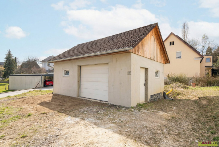 Wohnküche / offene Küche, Bad mit Fenster, Badewanne, Dusche, Garage, Parkplatz