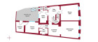 Im 1. und 2. Obergeschoss befinden sich jeweils großzügige Wohnflächen (oder Büroflächen) mit Bad und WC, im 1. OG zusätzlich mit uneinsehbarer Terrasse. Das Wohnzimmer im 2. OG überzeugt durch loftartigen Charakter. Das Dachgeschoss (errichtet ca. 1980) bietet weiteres Ausbaupotenzial. Die solide Bausubstanz sowie bis zu 80 cm dicke Außenmauern sorgen für ein angenehmes Wohnklima.
