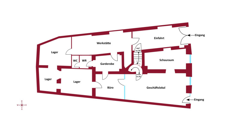 - Nutzfläche EG/Geschäftslokal: ca. 140 m²