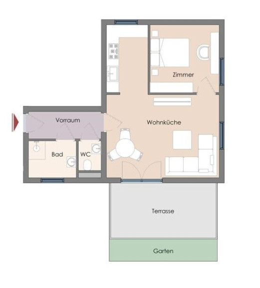 - Top 2: EG: 2 Zimmer; Bürofläche: ca. 48,50m²; Garten + Terrasse: ca. 18,72m²; 249.000,-- Euro