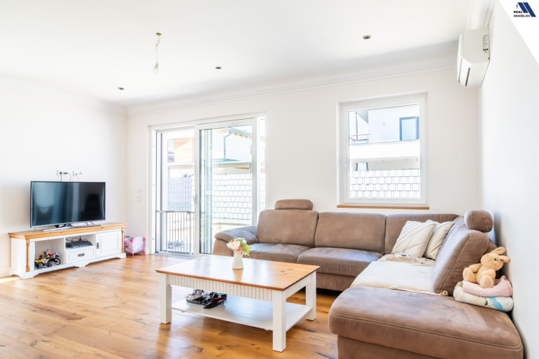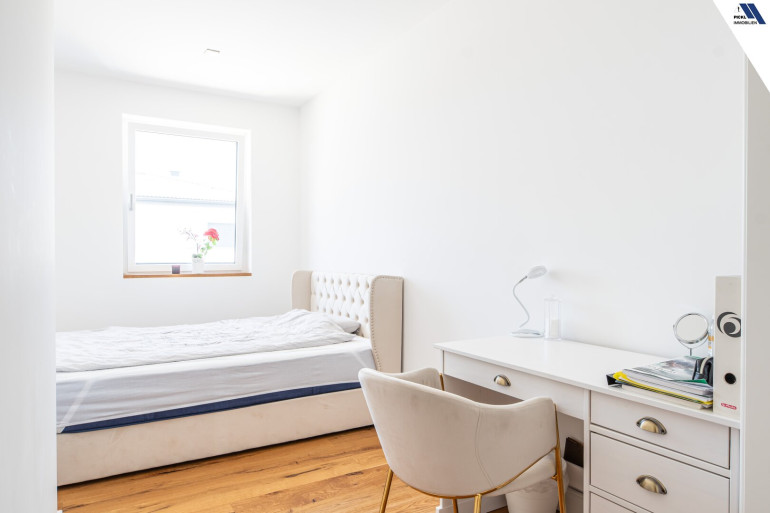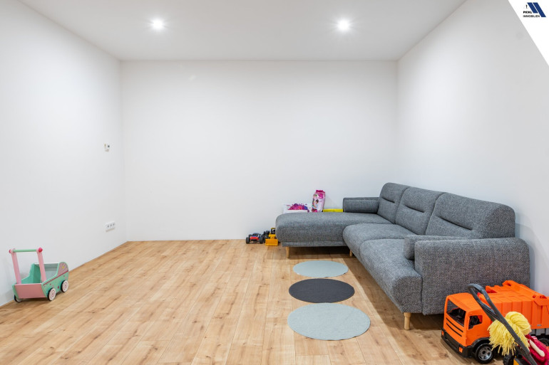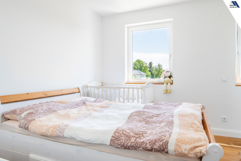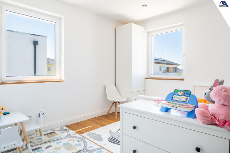Kindergarten und neuer Spielplatz sind fußläufig erreichbar, ebenso wie die gute Anbindung an den öffentlichen Busverkehr – ideal für Familien und Pendler.
