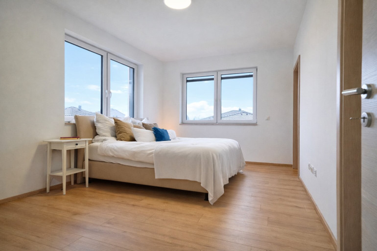 Drei komfortable Schlafzimmer bieten ausreichend Platz für die ganze Familie. Besonders hervorzuheben ist der private Elternbereich mit eigenem Bad und begehbarem Kleiderschrank – Ihr persönlicher Rückzugsort.