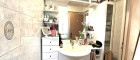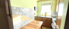 *Das Badezimmer: Vom Vorzimmer aus rechts liegt das Badezimmer mit der Eckbadewanne, dem Waschbecken und dem Fenster;
