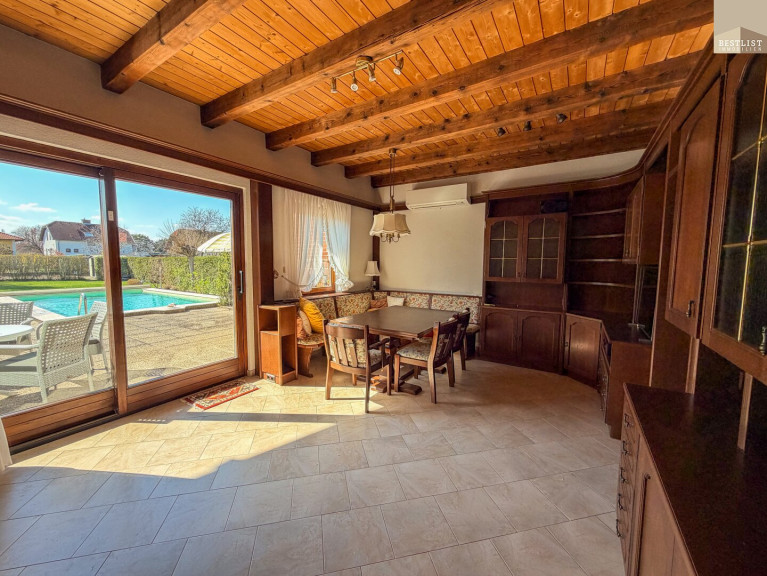 Zusätzliche funktionale Qualität bietet die Garage mit angeschlossenem Geräteraum bzw. Werkstatt, die nicht nur praktischen Stauraum schafft, sondern auch Raum für handwerkliche Tätigkeiten oder individuelle Nutzungsideen eröffnet. Vom Geräteraum aus gelangt man über einen Abgang in den Technikraum, in dem sowohl die Pooltechnik untergebracht ist als auch ausreichend Platz für die Weinlagerung zur Verfügung steht.