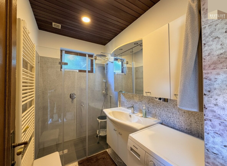 Bereits beim Betreten zeigt sich die durchdachte Struktur des Hauses. Das Vorzimmer bietet ausreichend Platz für Garderobe und Stauraum. Linker Hand befinden sich ein Abstellraum sowie das Badezimmer mit Dusche, rechter Hand das separat angelegte WC.