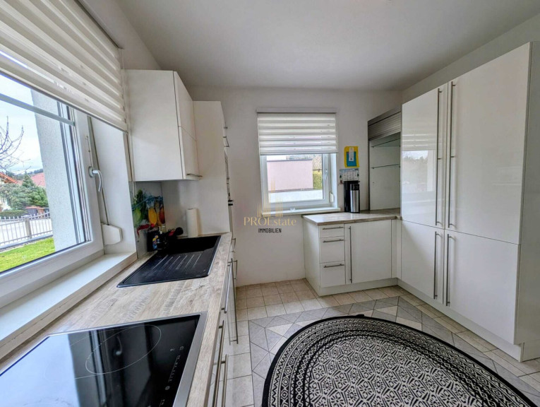Im Inneren erwarten Sie elegante Fliesen und warmes Parkett, die für eine stilvolle Atmosphäre sorgen. Die Fußbodenheizung in Kombination mit der umweltfreundlichen Erdwärme sorgt für ein angenehmes Raumklima und effiziente Energienutzung. Die moderne, neuwertige Einbauküche ist ideal für Hobbyköche und lädt zu geselligen Kochabenden ein.