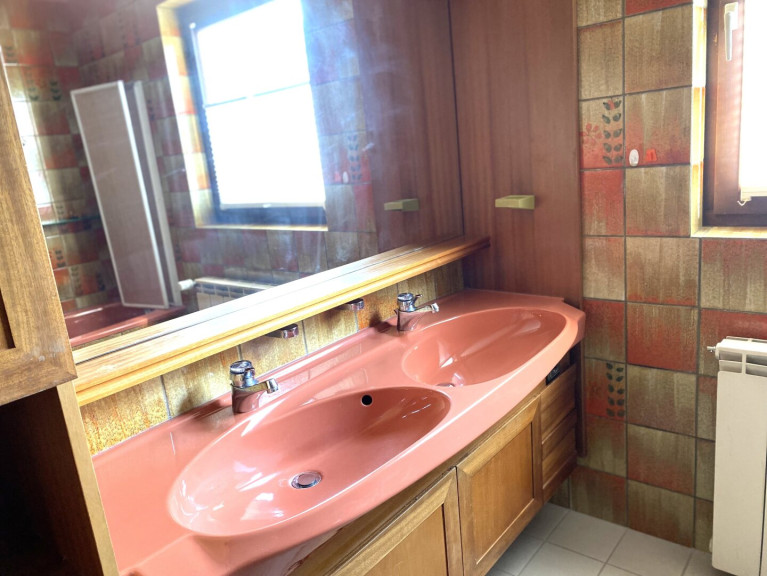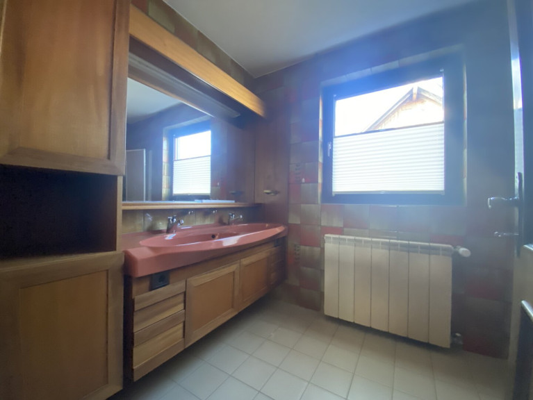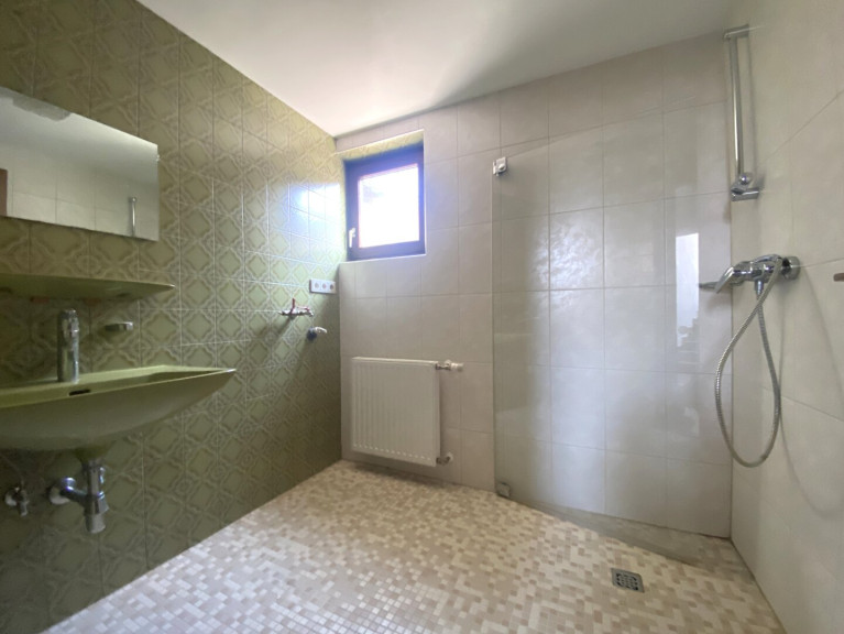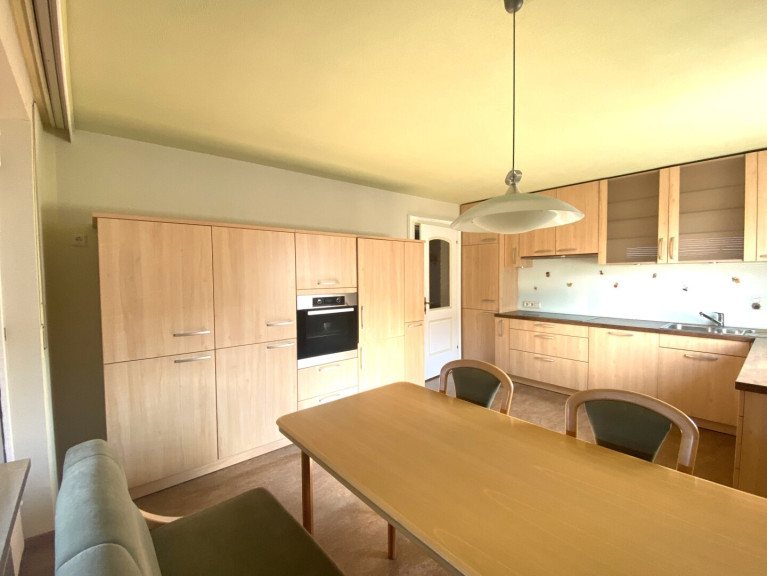 Die Ausstattung ist ins Alter gekommen, aber funktionstüchtig: Eine Einbauküche sorgt für Kochvergnügen, während das Badezimmer mit Fenster, Badewanne und Doppelwaschbecken Komfort und Funktionalität vereint. Die zentrale Öl-Heizung garantiert wohlige Wärme in allen Räumen. Zusätzlich steht Ihnen eine praktische Doppelgarage zur Verfügung, die Ihre Fahrzeuge sicher schützt und zusätzlichen Stauraum bietet.