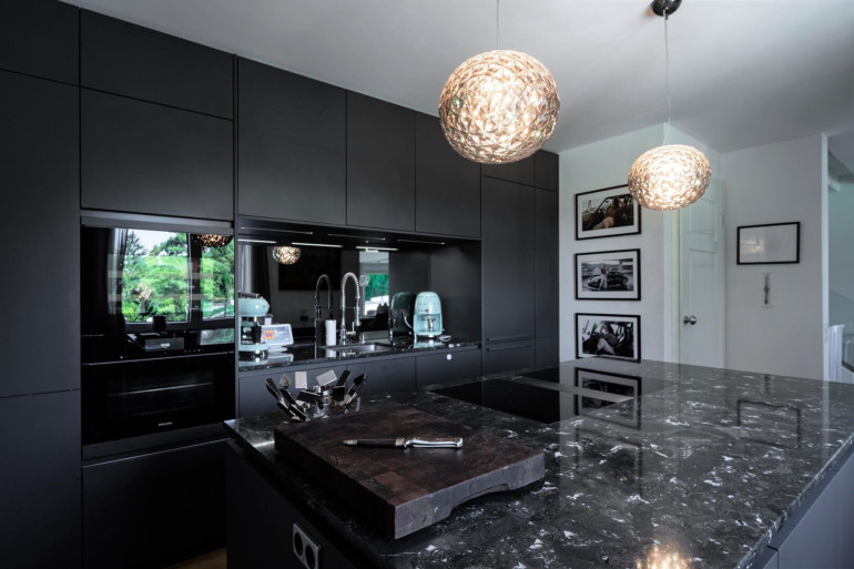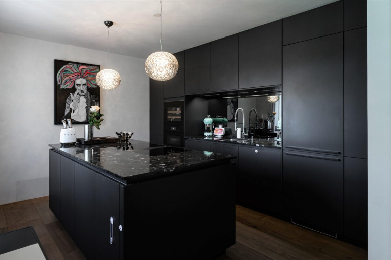 • Top ausgestattete Küche der Firma Leicht. Geräte der Firmen Miele u. Bora