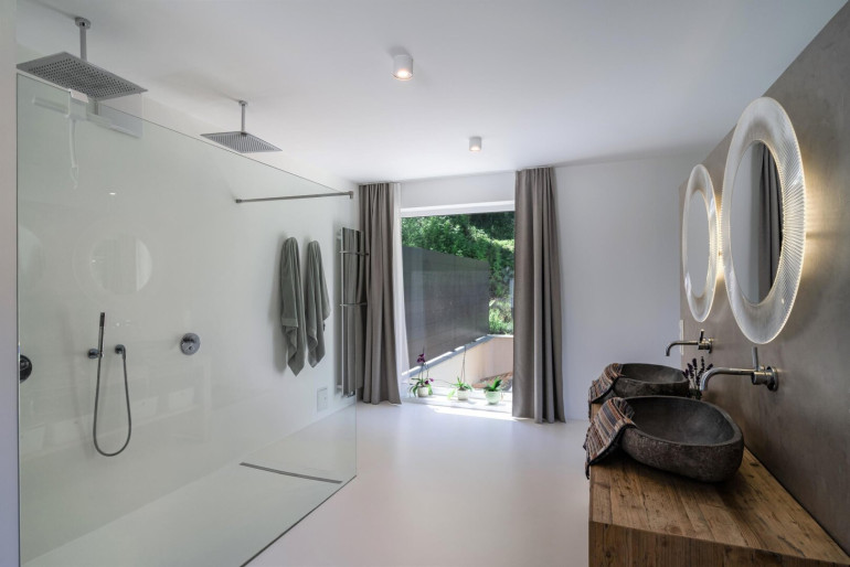 • Epoxidharz veredelte Walk-In Duschen mit Waldblick