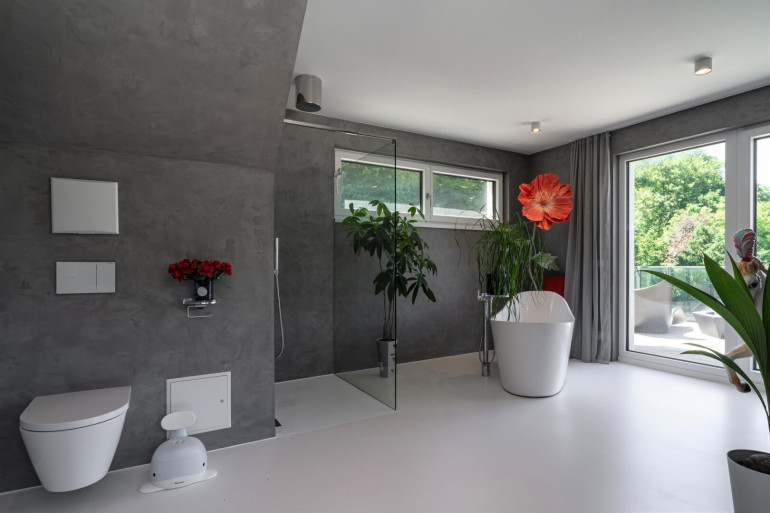 • Badezimmer inkl. freistehender Badewanne, sowie Walk-In Dusche und Dachterrassen Zugang