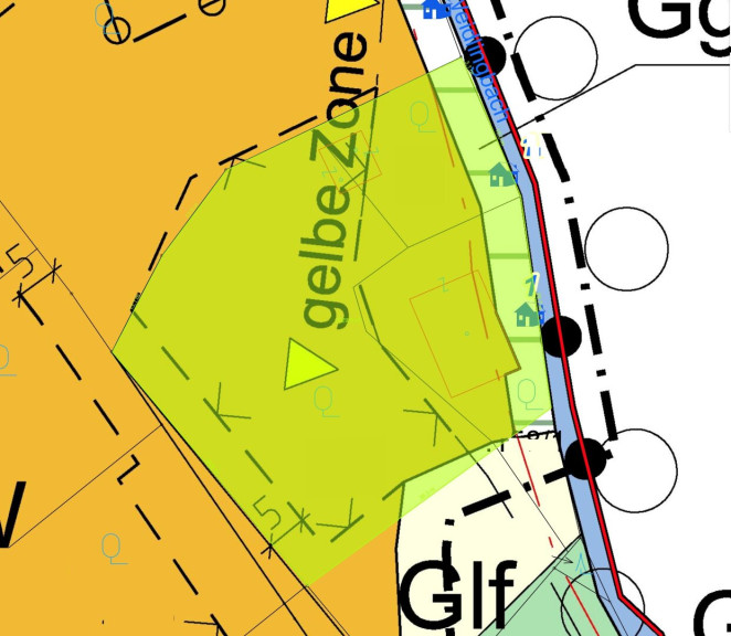 Für einen Neubau in der gelben Zone sind behördliche Vorgaben zu beachten – insbesondere sind die Auflagen mit der Abteilung Wildbach- und Lawinenverbauung individuell abzustimmen. Für die Verbauung der restlichen Fläche gilt die NÖ Bauordnung.