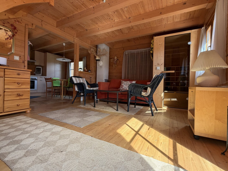 Dieses charmante Einfamilienhaus, errichtet 2002 auf einem 616m² großen Grundstück, befindet sich in nahezu Erstbezugszustand. Es verfügt über 3 Zimmer mit gesamt 63m² Wohnfläche auf 2 Ebenen, einen überdachten Eingangsbereich, einen Geräteschuppen, Fensterläden, Infrarotkabine, Kaminanschluss im Wohn-Essbereich (hier können Sie einen Schwedenofen oder Pelletsofen anschließen), Außenwasseranschluß, Gartenhütte, liebevoll gestalteten Garten und vieles mehr. Es wird voll möbliert, wie auf den Fotos ersichtlich, verkauft. Erbaut in massivholzbauweise aus langsam gewachsener Alpenfichte (mit Dämmwerten wie ein 40cm Ziegel), bietet es auf 63 m² Wohnfläche ein gemütliches und gepflegtes Ambiente, das Sie sofort begeistern wird. Mit insgesamt 3 Zimmern ist es der ideale Rückzugsort für Paare, kleine Familien oder alle, die Wert auf ein angenehmes Wohngefühl legen. Selbstverständlich wäre auch noch ein Zubau/Vergrößerung des Hauses möglich, da es sich bei dem Grundstück um Bauland Wohngebiet handelt.