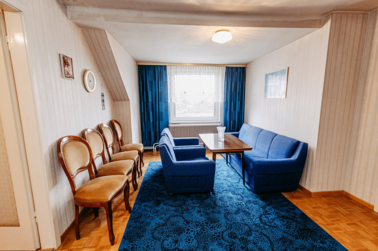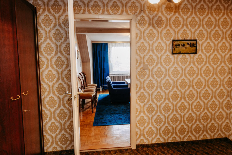 der „Altteil“ birgt eine Kleine Wohneinheit, bestehend aus Zimmer, ehem. Küche, Kabinett, Stauraum.