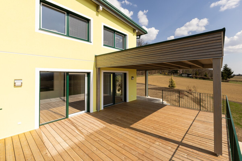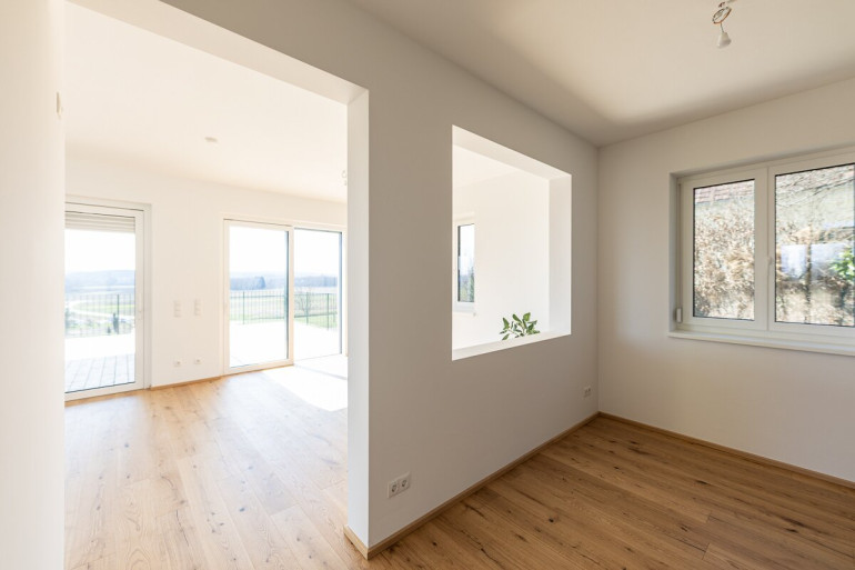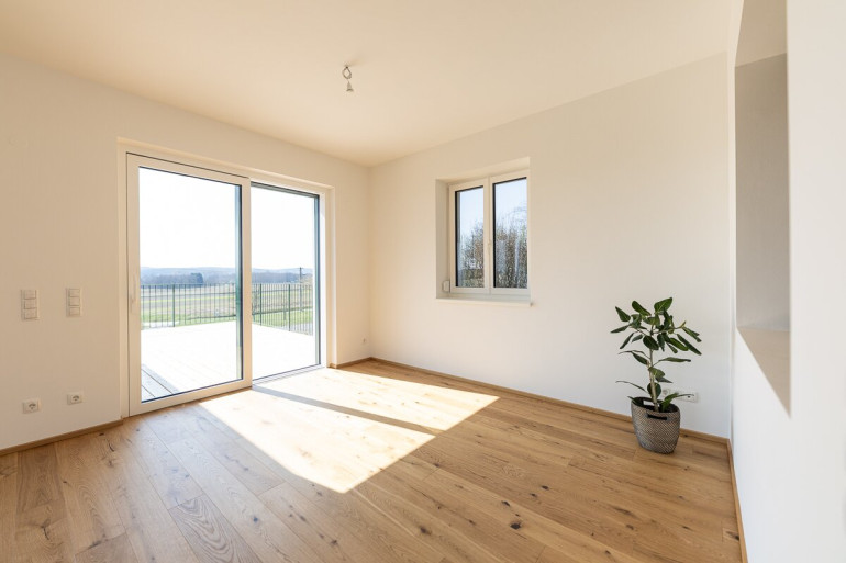 Ihren Anspruch auf eine gehobene Wohnsituation wird dieses Einfamilienhaus ( Fertigstellung März 2026 ) mit einer Gesamtnutzfläche von ca. 278 m2 in jeder Hinsicht folge leisten. Das zweigeschossige, in Ziegel Massivbauweise errichtete Gebäude erfüllt beste Qualitätsstandards und ist auf höchstem Level ausgestattet. Mit viel Feingefühl wurden die hochwertigen Materialen für den ca. 181 m2 großen Wohnbereich selektiert, eine moderne Einbauküche inkl. stilvollem Tischherd ist bereits vorhanden, ebenso wie die voll ausgestatteten Bäder und WC`s - einzig die individuelle Einrichtung der Räumlichkeiten ist noch von den neuen Eigentümern zu gestalten. In beiden Etagen wurde eine vollflächige Fussbodenheizung installiert welche mittels kostengünstiger Erdwärme betrieben wird, ebenso sind Vorkehrungen für die Installation einer Photovoltaik Anlage getroffen worden.