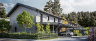 Die Außenanlagen umfassen eine gepflasterte Terrasse, einen humusierten Gartenbereich pro Einheit und die befestigte Zufahrt mit Wendehammer. Jede Einheit erhält einen Doppelcarport mit Platz für zwei Fahrzeuge. Die Carports werden als Holzkonstruktion mit anthrazitfarbenem Sandwichpaneeldach ausgeführt. Eine Einfriedung mittels Doppelstabmattenzaun in Anthrazit kann auf Wunsch und gegen Aufpreis errichtet werden.