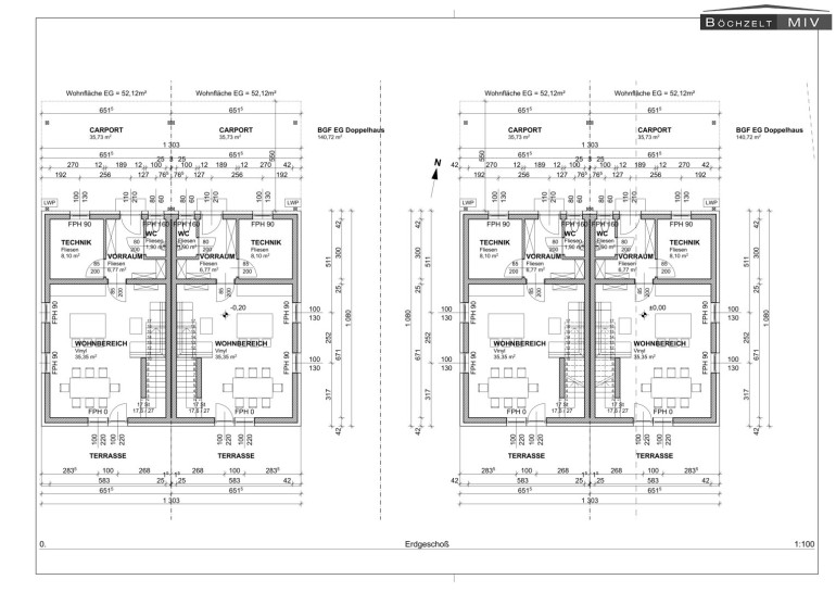 - Doppelcarport je Wohneinheit für zwei Fahrzeuge