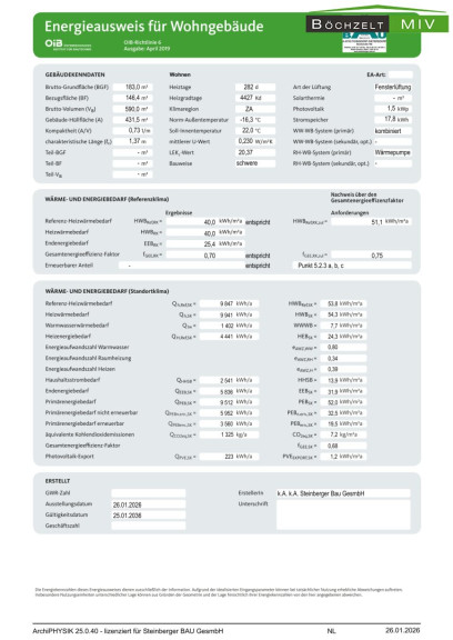 | Heizwärmebedarf: | C 54,30 kWh/m²a |