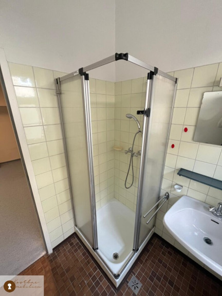 Badezimmer: Separate Dusche mit Waschbecken, auf beiden Seiten des Objekts vorhanden.