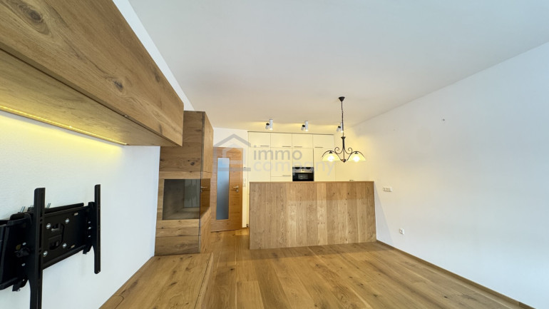 Vom einladenden Vorraum mit maßgefertigter Garderobe gelangen Sie in den offenen Wohn- und Essbereich mit voll ausgestatteter Küche. Die Kombination aus moderner Technik und edlen Materialien – darunter exklusive Voglauer Vollholzmöbel – schafft ein warmes und gleichzeitig elegantes Wohnambiente.