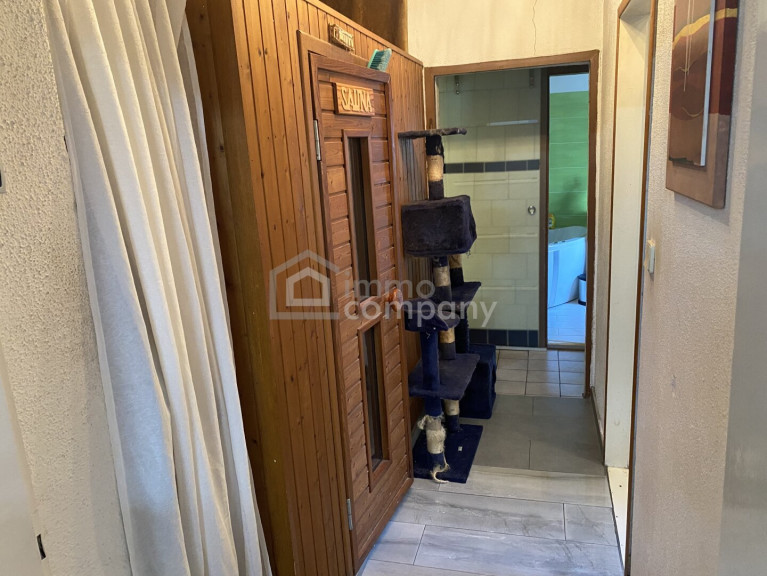 Fliesen, Laminatboden, Parkettboden, Alternativ, Gas, Kamin, Zentralheizung, Einbauküche, Bad mit Fenster, Badewanne, Dusche, Garage, Sauna