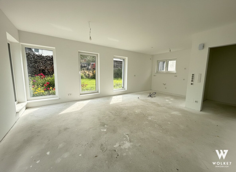 Herzstück des Hauses ist die großzügige, offen gestaltete Wohnküche, die durch ihre Helligkeit und Offenheit ein besonders angenehmes Wohngefühl schafft. Hier entsteht ein zentraler Treffpunkt für Familie und Freunde. Ein vorhandener Rauchfang ermöglicht zusätzlich die Realisierung eines Kamin- oder Ofenbereichs für extra Wohnkomfort.