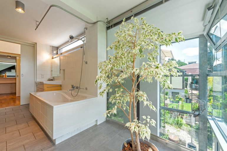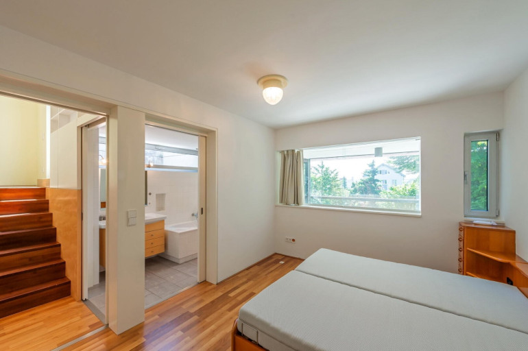 Das Haus hat vom Obergeschoß Schlafzimmer und Bad einen grandiosen Süd-Ausblick über den Garten bis nach Gießhübl und Anninger.
