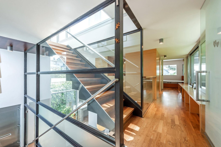 Die moderne Architektur und Innenausstattung beeindrucken mit vielen Glasflächen und entsprechend hohem, natürlichen Lichtanteil mit Raumhöhen, die bis zu ca. 5m betragen und somit ein einzigartiges Raumgefühl und exclusive Lebensqualität vermitteln. Zusätzlich erfreut sich der Mieter im Bereich der Unterkellerung von 60m² an einem hochwertigen Hobby-/Fitnessraum, inklusive finnischer Sauna und Wellnessbereich.