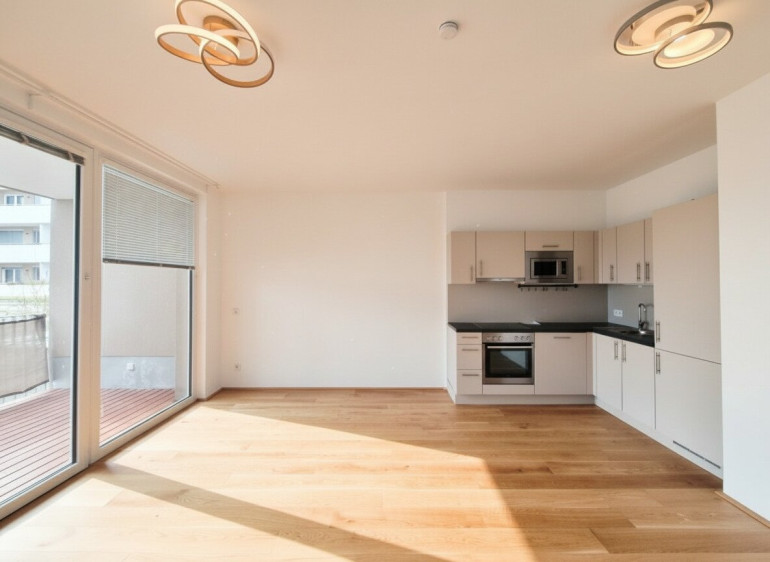 Ausstattung: Fußbodenheizung, Echtholz-Parkettböden, moderne Einbauküche mit Markengeräten, hochqualitative Zargen und Innentüren, Gegensprechanlage mit Farbkamera