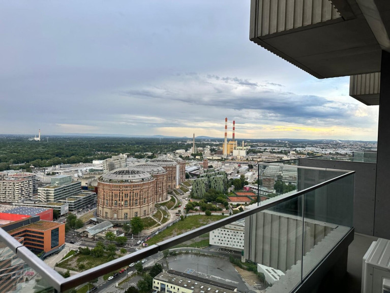 Quasi neben den riesigen Nacherholungsgebieten (zu Fuss oder mit Fahrrad durch den Prater bis zur Donau und Donauinsel). 3 min zu Fuss zu U3 (und dann in 9 min am Stephansplatz), gleich bei Auffahrt zu Autobahn Richtung Flughafen (12 min mit Auto) und doch ruhig. Und noch nahe den Wolken und damit ruhig.