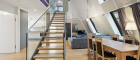 Über die Stiege inmitten des Raumes gelangen Sie in das obere Stockwerk der Wohnung. Dort befindet sich eine offen gestaltete Galerie, die sich vielseitig nutzen lässt. Zu beachten ist, dass dieser Bereich offen gestaltet ist und nicht durch eine Tür abgetrennt ist! Zusätzlich steht ein weiteres, durch eine Tür abgetrenntes Zimmer mit ca. 31 m² zur Verfügung.