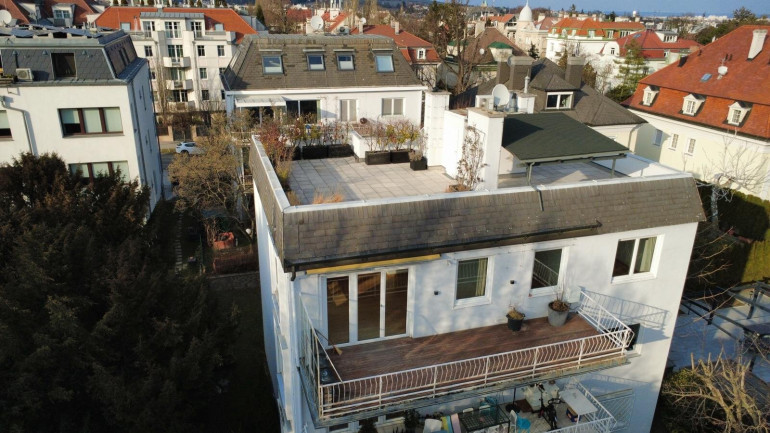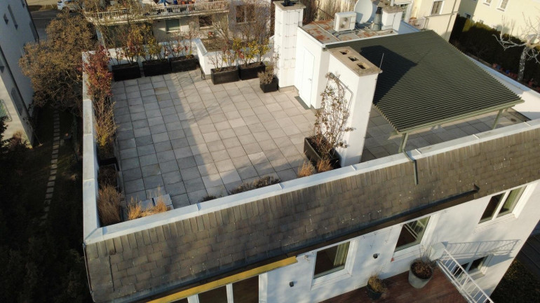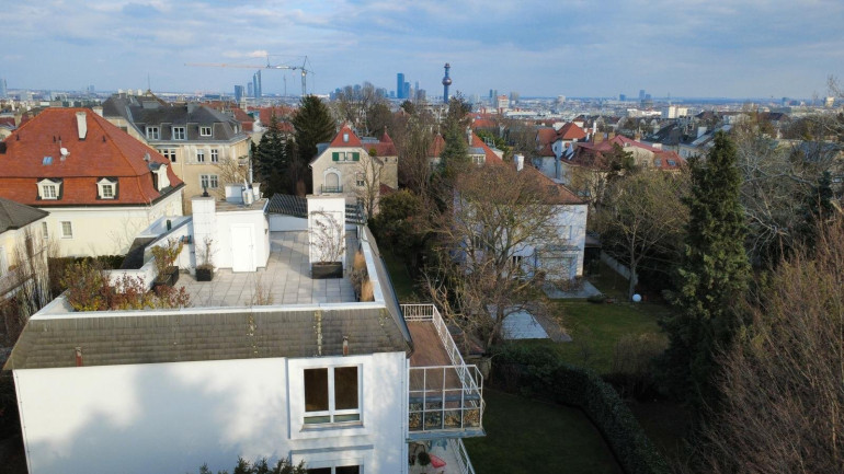 Diese moderne Dachgeschosswohnung bietet eine einzigartige 105 m² große Dachterrasse mit atemberaubendem Wienblick inmitten des 19. Bezirks.