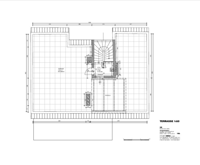 Die Terrassenfläche wird kaum durch Kaminwände gestört, sodass tatsächlich die ganze Fläche optimal genutzt werden kann. Ein großartiger Grün- und Fernblick sowie uneingeschränkte Sonne (mit Pergola über dem Essbereich) machen die Terrasse zu einem optimalen Aufenthaltsbereich.