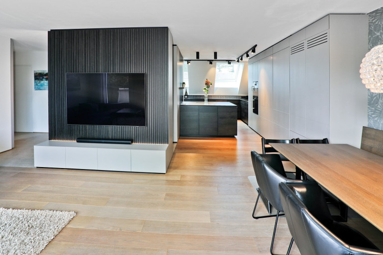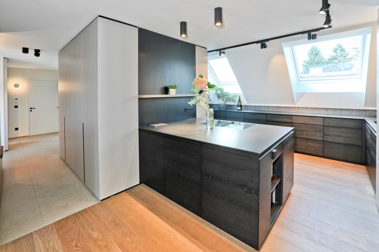 Diese außergewöhnliche Dachgeschosswohnung mit einer Fläche von knapp 140 qm wurde vom renommierten Innenarchitekturbüro TheBlackSquare konzipiert und überzeugt durch ein stimmiges Zusammenspiel aus Design, Qualität und Funktionalität.