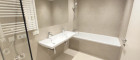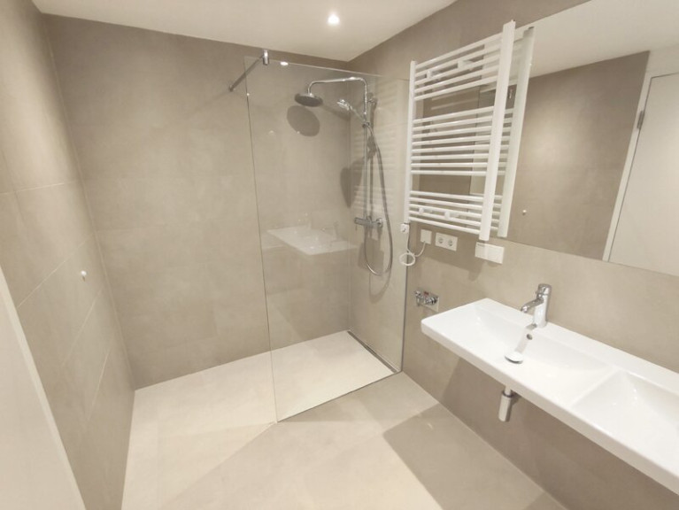 Die Wohnung besticht nicht nur durch ihre Innenausstattung, sondern auch durch die durchdachte Raumaufteilung. Ein modernes Badezimmer mit Doppelwaschtisch, Badewanne und separater Dusche lädt zum Entspannen ein. Das separate WC ist mit einem Handwaschbecken ausgestattet.