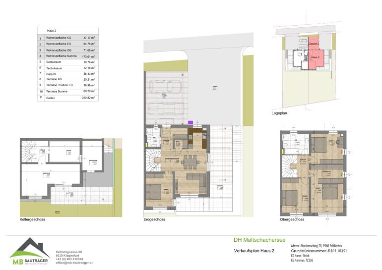 Die Immobilie befindet sich in Feldkirchen in Kärnten, einer Stadt in Kärnten, im Süden Österreichs. Sie liegt in einer ruhigen Wohngegend und ist in der Nähe eines Kindergartens und einer Bushaltestelle gelegen. Zudem bietet die Stadt Feldkirchen eine sehr gute Infrastruktur mit zahlreichen Einkaufsmöglichkeiten und Restaurants. Diese zwei Doppelhaushälften sind nur wenige Minuten vom wunderschönen Maltschacher-See entfernt und bietet daher den perfekten Rückzugsort für Familien oder junge Paare.