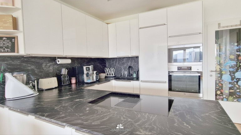 - Moderne Wohnküche mit Steinplatte und hochwertigen Geräten