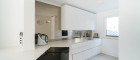 Küche: Ein griffloses Design. Bestückt mit Profi-Geräten von Gaggenau (Flex-Induktionskochfeld mit integriertem Abzug) sowie Miele (Dampfbackofen mit festem Wasseranschluss, Kühlschrank mit Perfect-Fresh-Laden und Geschirrspüler)
