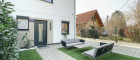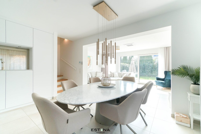 Garten-Oase: Große Glasfronten öffnen den Blick auf die Terrasse und den privaten Garten – Ihre persönliche Erweiterung des Wohnzimmers ins Grüne.