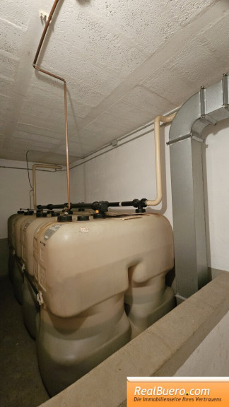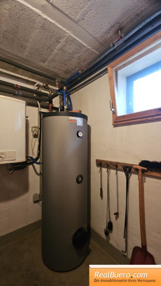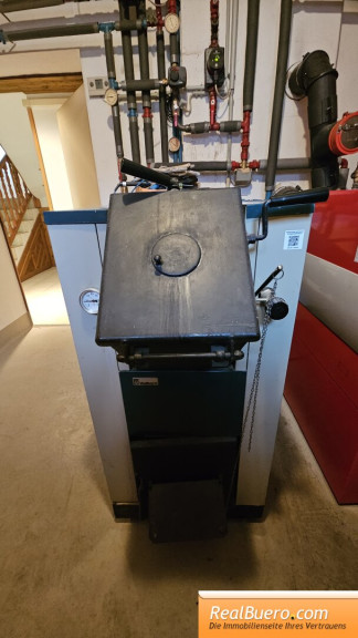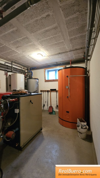 - 2. Kellerraum - Heizraum (Heizkessel für feste Brennstoffe, Ölheizkessel, Elektrowarmwasserspeicher, Warmwasserspeicher für die Zentralheizung und ein Pufferspeicher)
