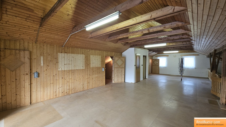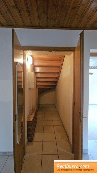 - Vorzimmer / Flur mit Treppenaufgang zum Dachboden (nicht ausgebaut) sowie Treppenabgang in den Keller