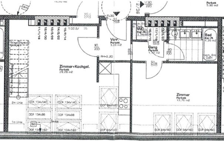 + Holzstiege, Parketten, Fliesen in den Nassräumen