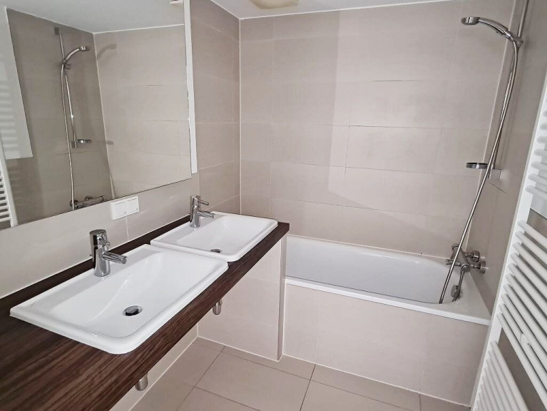 + Badezimmer mit Badewanne, Doppelwaschtisch, Waschmaschinenanschluss