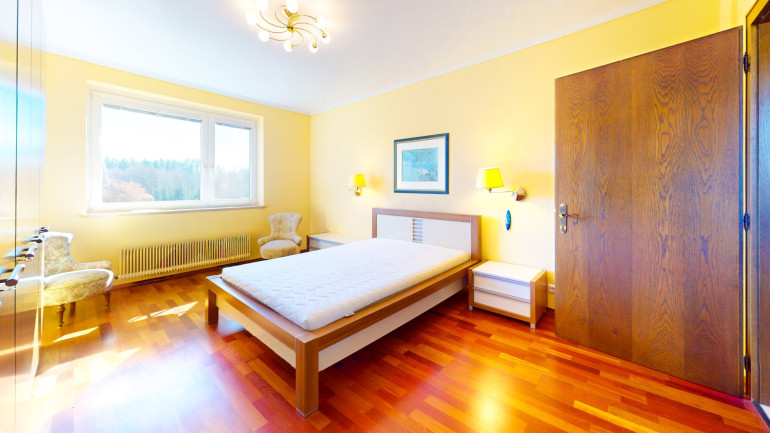 Das Obergeschoss erweitert das Raumangebot noch einmal deutlich und schafft ideale Voraussetzungen für eine große Familie oder für Wohnen mit mehreren Generationen. Laut Grundriss stehen hier ein Schlafzimmer, zwei weitere Familienzimmer, ein Esszimmer, eine Küche, ein Badezimmer, ein separates WC, ein großzügiger Flur sowie der Balkon zur Verfügung. Dadurch entsteht eine Struktur, die nicht nur viel Platz bietet, sondern auch unterschiedliche Nutzungsszenarien zulässt – etwa als Familienetage, Gästebereich, Rückzugszone für Kinder und Jugendliche oder als Kombination aus Wohnen und Arbeiten. Der im Exposé ausgewiesene Balkon ergänzt diese Ebene um einen attraktiven Außenbereich mit schönem Wohnwert. Zudem sind laut Ausstattung Bergblick, Fernblick und Grünblick vorhanden, was den qualitativen Gesamteindruck zusätzlich aufwertet.